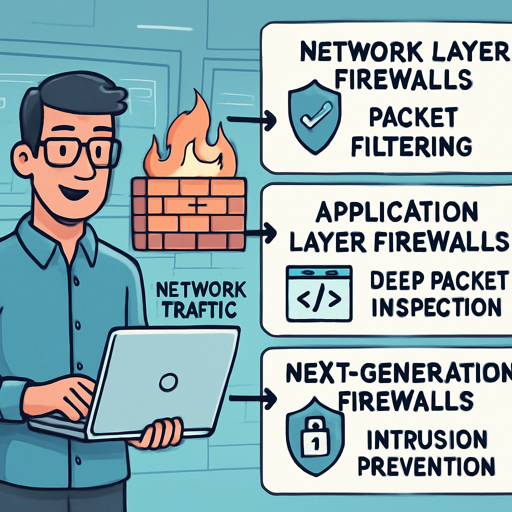 - ជញ្ជាំងការពារស្រទាប់បណ្តាញ (Network Layer Firewalls) – ត្រួតពិនិត្យចរាចរណ៍ផ្អែកលើព័ត៌មានកញ្ចប់ទិន្នន័យ (packet) ដូចជាអាសយដ្ឋាន IP និងច្រក (port)