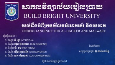 ខាងក្រោមនេះគឺជាកិច្ចការចងក្រងរបស់និស្សិតក្រោមប្រធានបទ “យល់ដឹងអំពីក្រមសីលធម៌ហេគឃ័រ និងមេរោគ (Ethical Hacker and Malware)”។ សូមអរគុណដល់និស្សិតដែលមានឈ្មោះដូចខាងក្រោម ដែលបានចូលរួមចំណែកបង្កើនការយល់ដឹងផ្នែកសន្តិសុខបច្ចេកវិទ្យាគមនាគមន៍ និងព័ត៌មានតាមរយៈការចងក្រងជាឯកសារនេះឡើង។ ១. និស្សិត វី រដ្ឋា (VY ROTHA)២. និស្សិត ហ៊ុន ប៊ុនហេង (HUN…